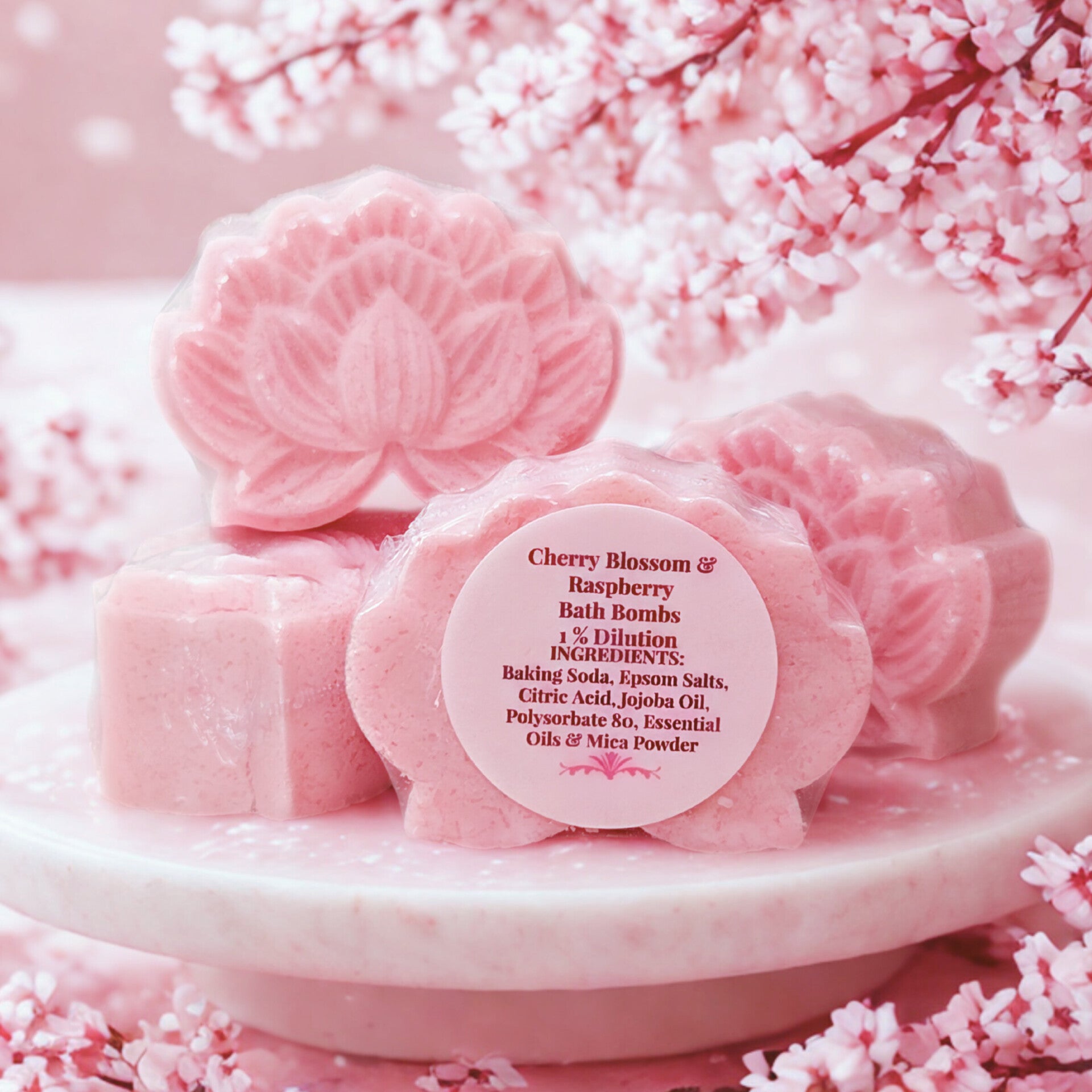 Cherry Blossom and Raspberry 4 pack of 2oz Bath Bombs 1%