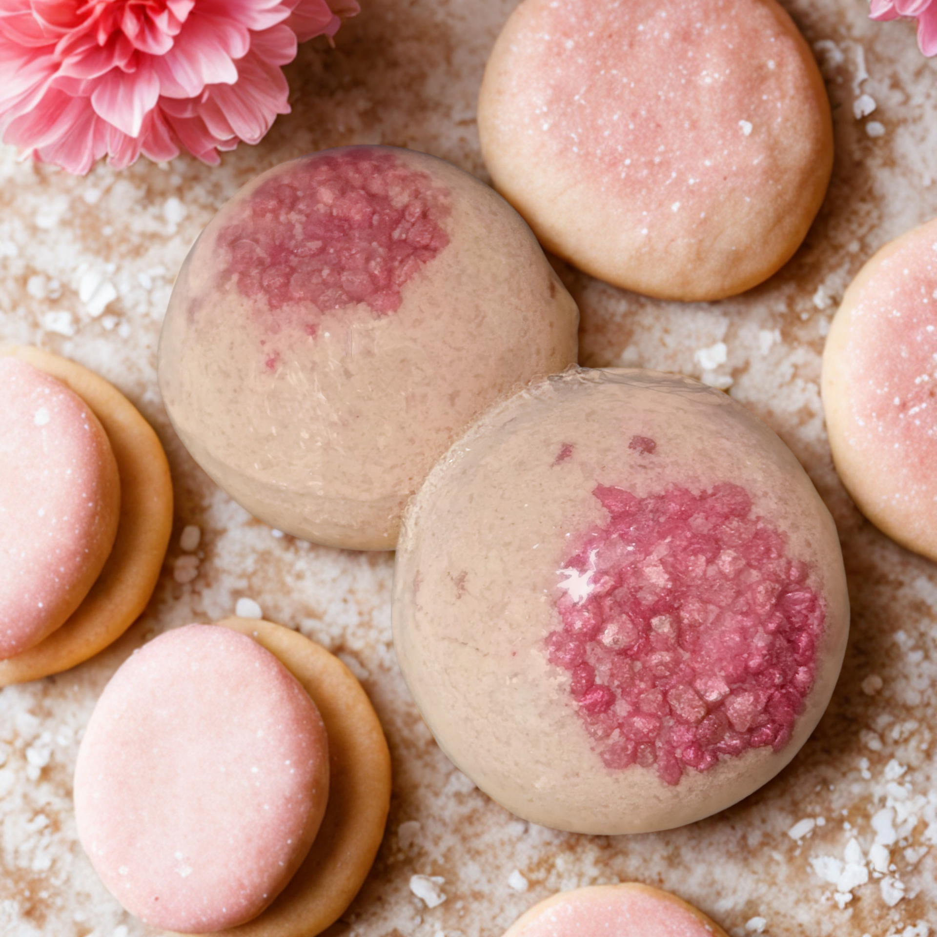 Single Sugar Cookie Bath Bomb with Jasmine Flowers Bath Bomb 4.5oz (with crystal heart inside)