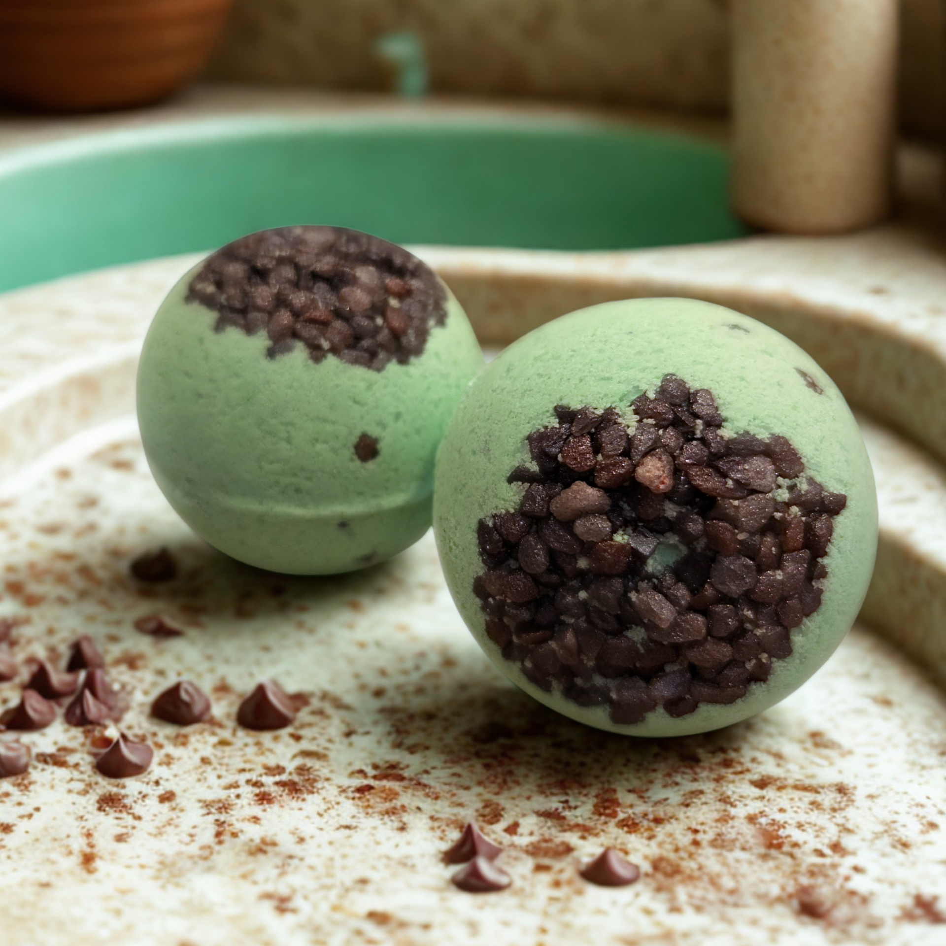 Single Chocolate Mint Cookie Bath Bomb 4.5oz (with crystal heart inside)